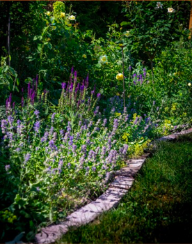 Erfrischendes Limonengelb durchsetzt mit indigoblau und lila Blüten und dazu blau-graues Blattwerk sorgen für Spannung in diesem geschwungenen Border. Doch das war nicht immer so.